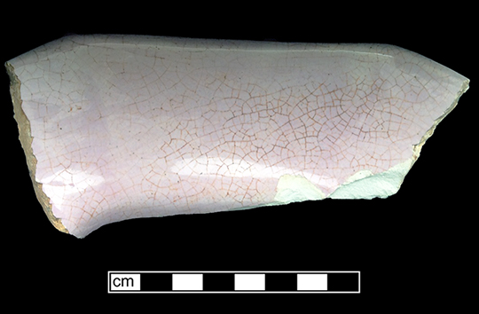 Green glazed majolica pitcher sherds - mended - from 18BC79-Ruth Saloon site.