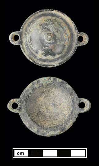 Description: Plain dome with a nipple at center, and rounded rivet tabs. Cross-section Type I.