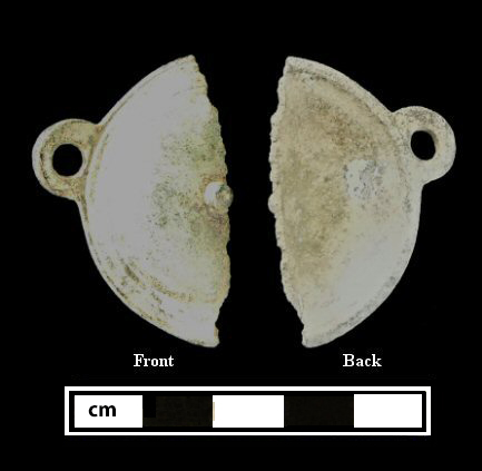 Description: Plain dome with a nipple at center and a rounded rivet tab. Cross-section Type II.