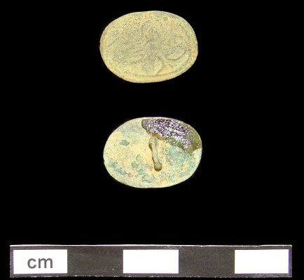 Context: Area I, Unit N119 E78, Level 2, 20th Century Pipe Trench Fill, Lot 349 Context Date Range: c. 1790s-1964 Material: Copper alloy Length: 0.74” (18.7 mm) Width: 0.52” (13.3 mm) Link Length: N/A Description: |