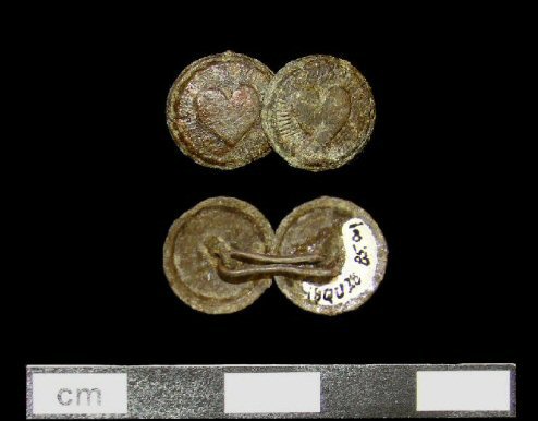 Context: Test Unit 1B-10b, ER#50D, Lot 85. Southwest corner of the main dwelling foundation. Site Date Range: c. 1675-1765 Material: Copper alloy Diameter: 0.52” (13.2 mm) Link Length: 0.53” (13.4 mm) Description: |