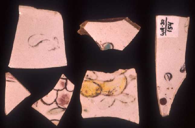 18WA20-149.001, 153.003, 300.002-004, 154.006 HAND PAINTED WHITE SALT-GLAZED STONEWARE SHERDS