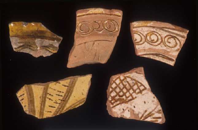 18QU28-136.01, 11.01, 233.01, 100.01, 149.01 NORTH DEVON SGRAFFITO SHERDS