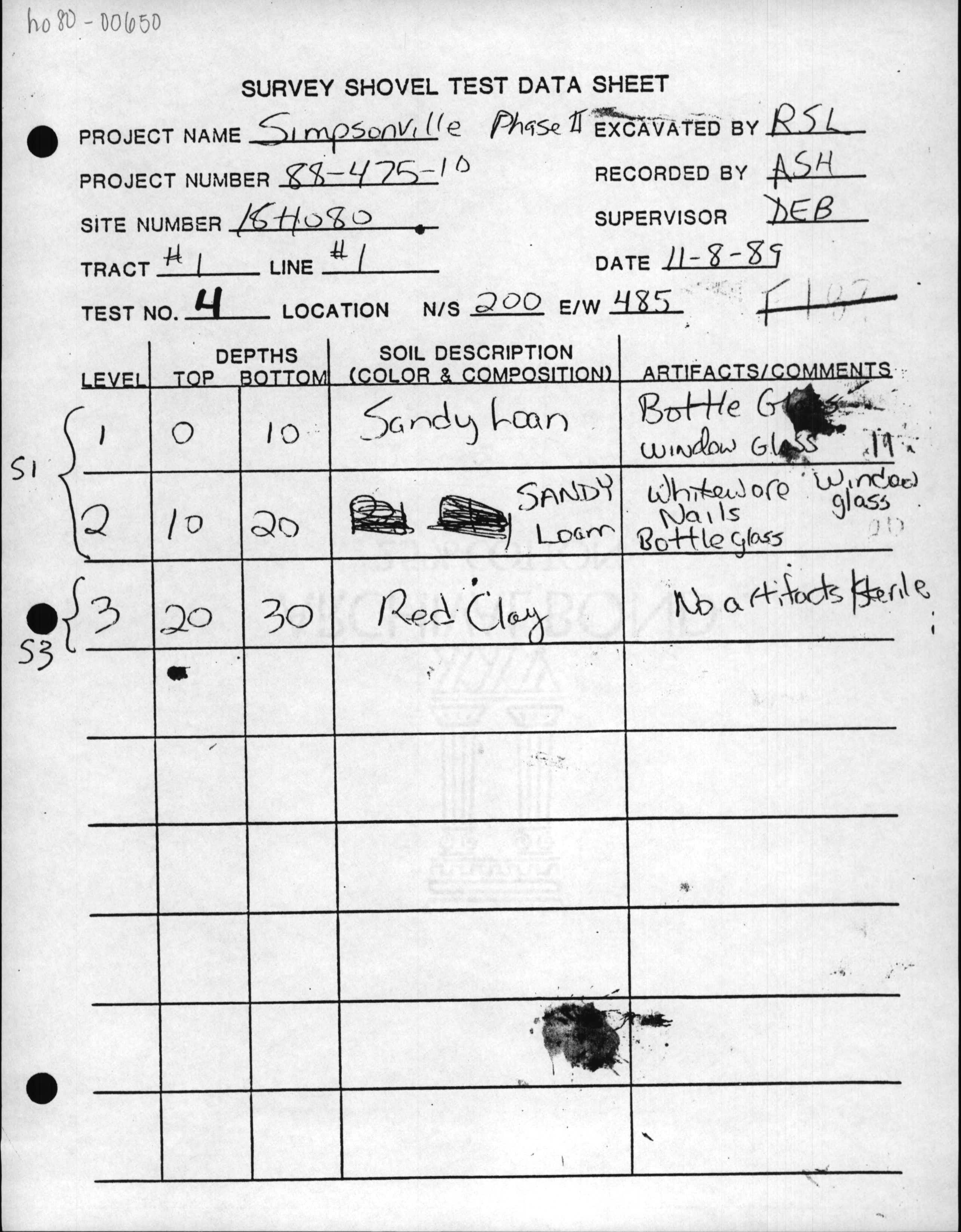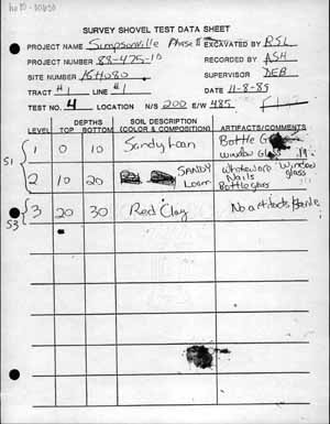 Document Type: survey shovel test data sheet